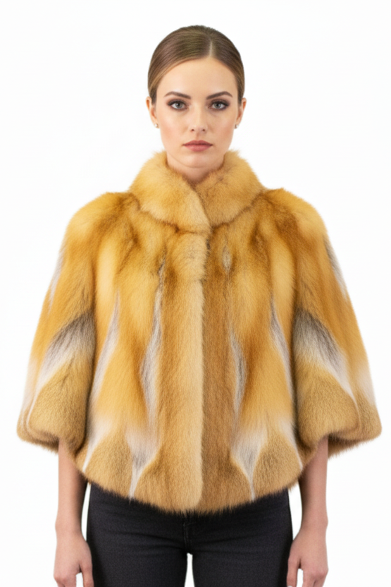 Elevate your wardrobe with this stunning natural red sectioned fox fur capelet, a versatile piece designed to complement any ensemble. Crafted with luxurious red fox fur and thoughtfully constructed with a flattering stand-up collar, this capelet offers both sophistication and practicality. It has a fully lined interior, and features convenient side pockets, while secure hook and eye closures ensure a polished fit. Its universal sizing makes it an effortless addition to your collection. With limited pieces in stock, this exceptional accessory won't last long—claim yours today.