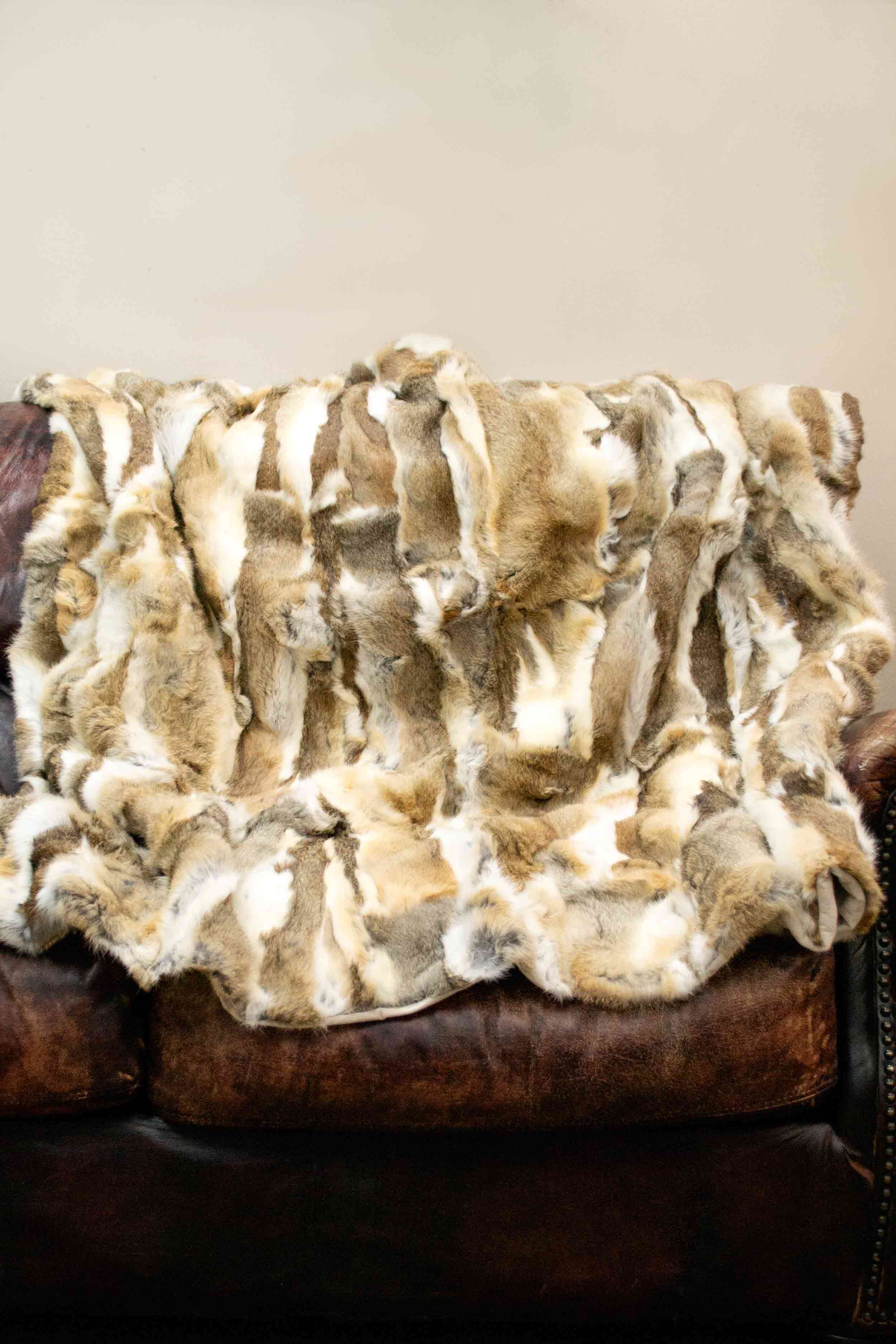 Enjoy snuggling up in this colorful & very soft rabbit fur blanket!