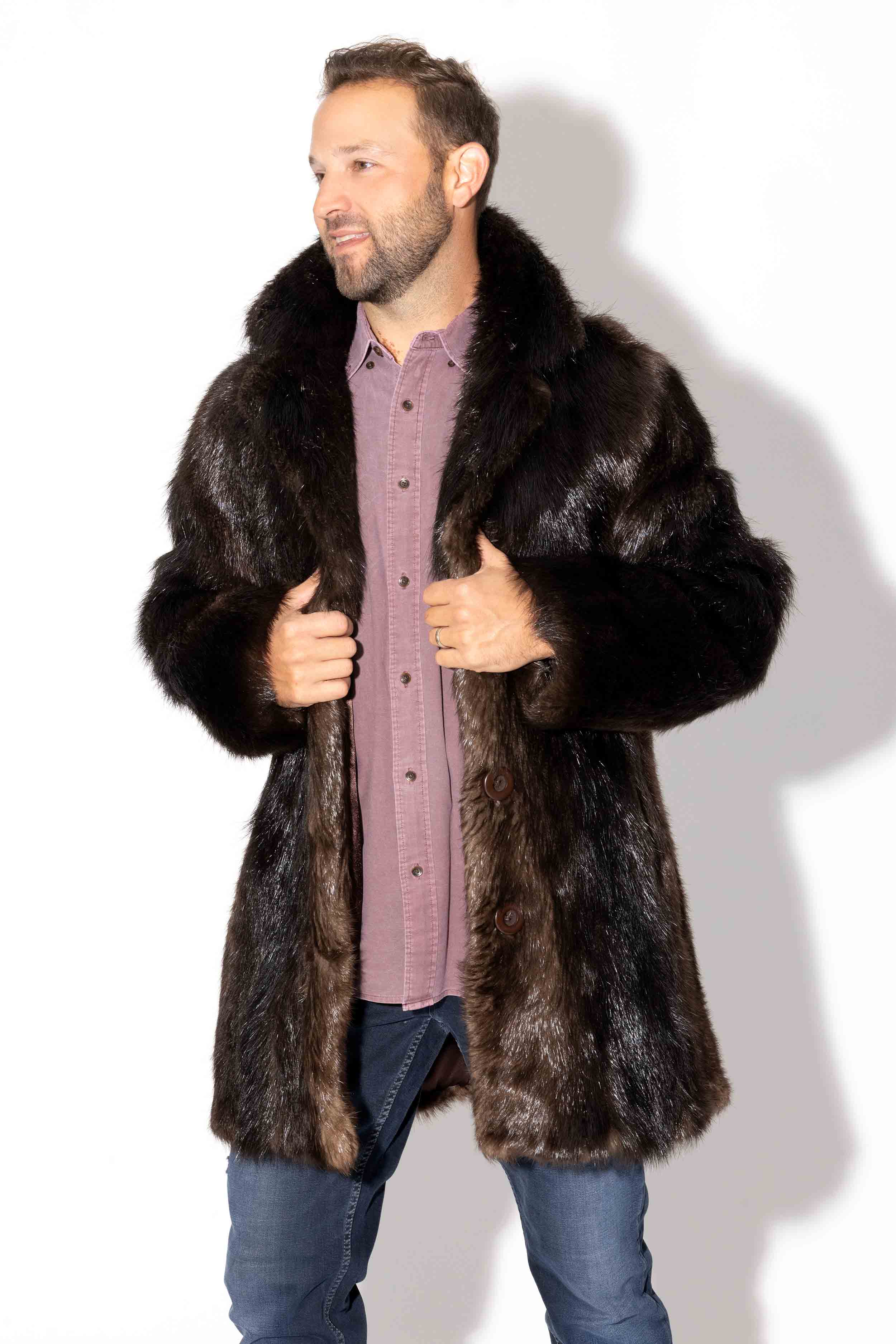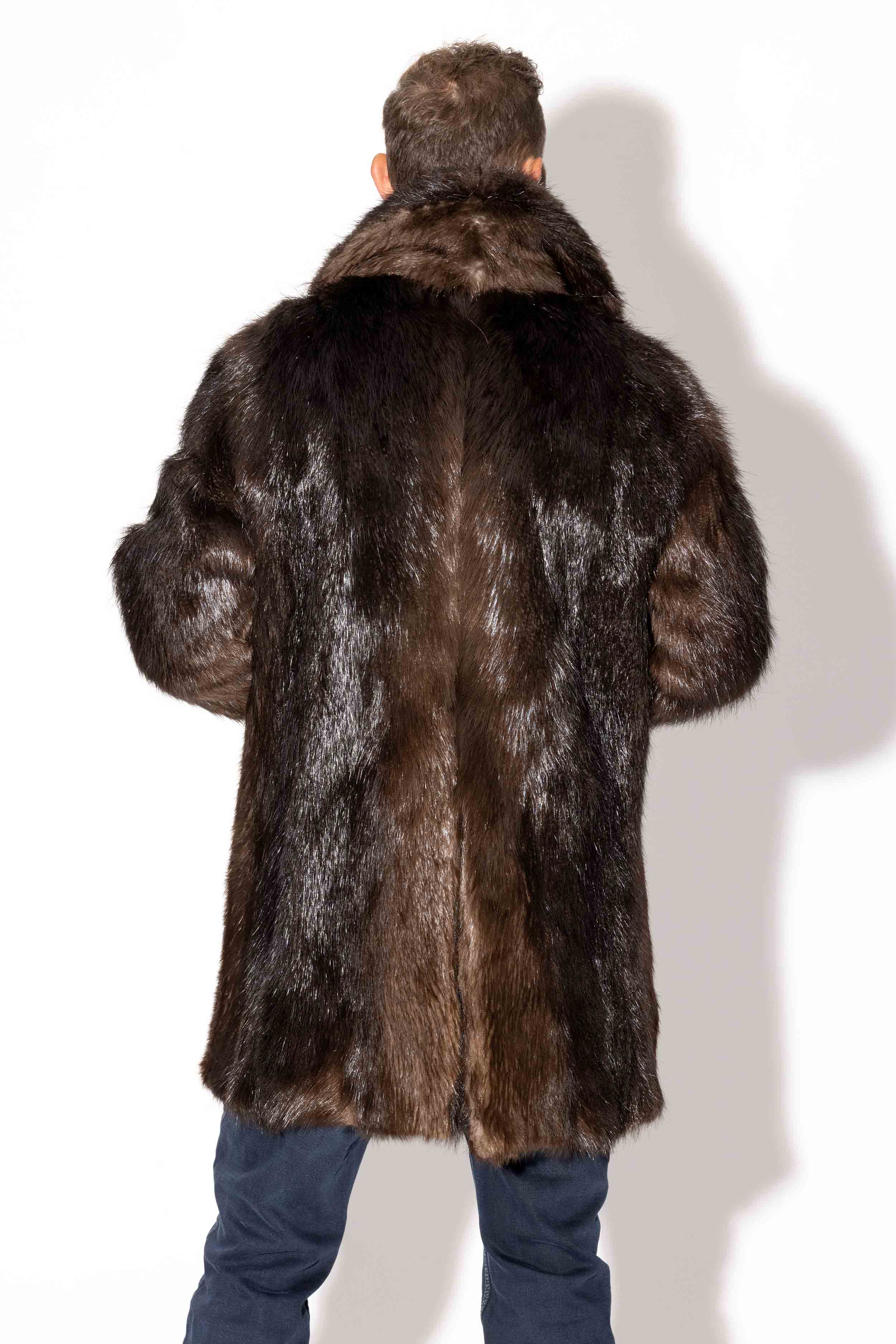 This custom-made beaver fur stroller is expertly crafted from premium, natural beaver fur. Designed with a button closure and convenient side pockets, it offers both style and functionality. Fully lined and enhanced with a notch collar, it ensures comfort and elegance.