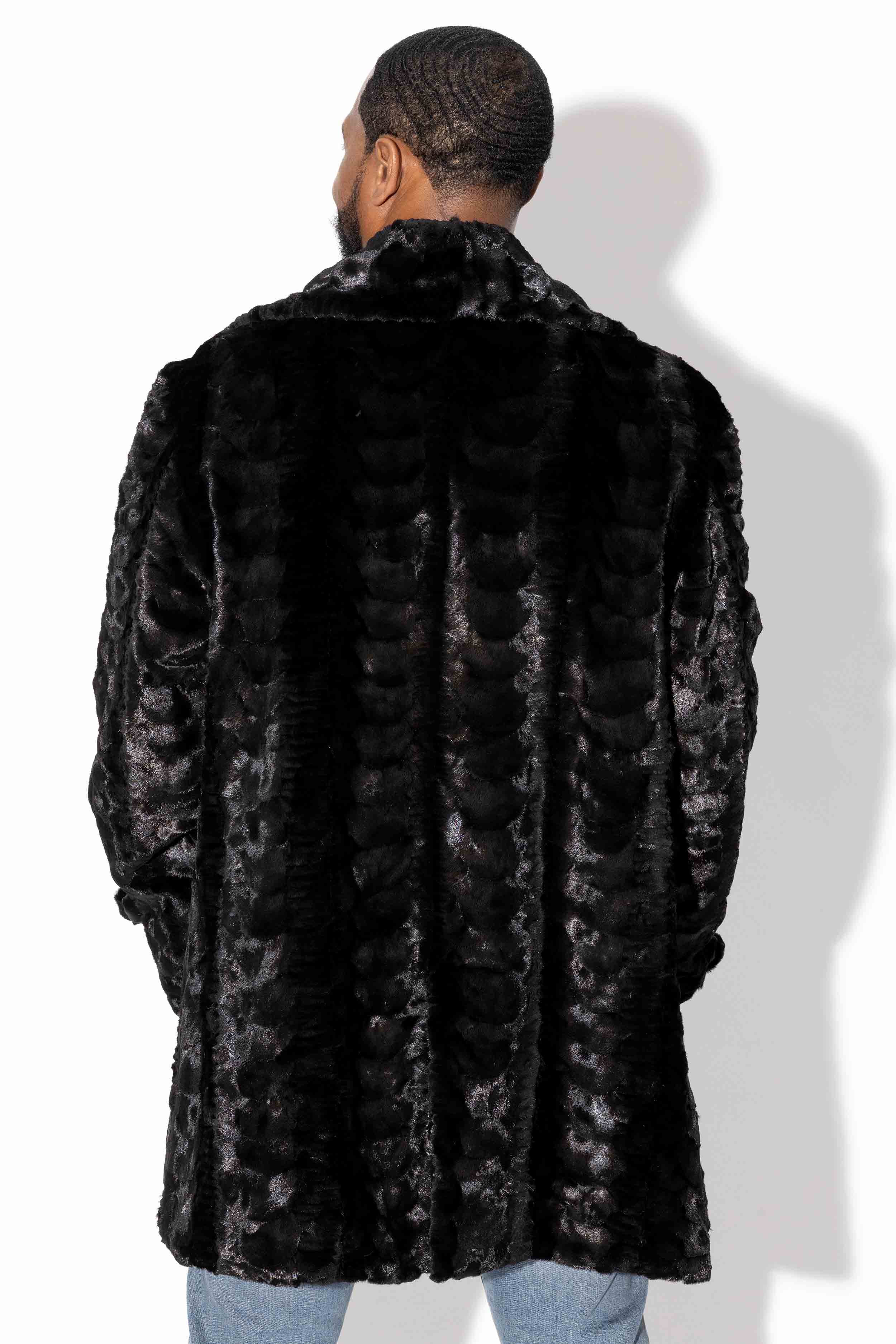 Elevate your outerwear with this timeless men's sheared sectioned mink fur stroller. It showcases a sophisticated notch collar, back split, and straight sleeves accented with epaulettes. Fully lined for comfort and equipped with a 3-button front, this elegant fur piece is a perfect addition to any discerning wardrobe.