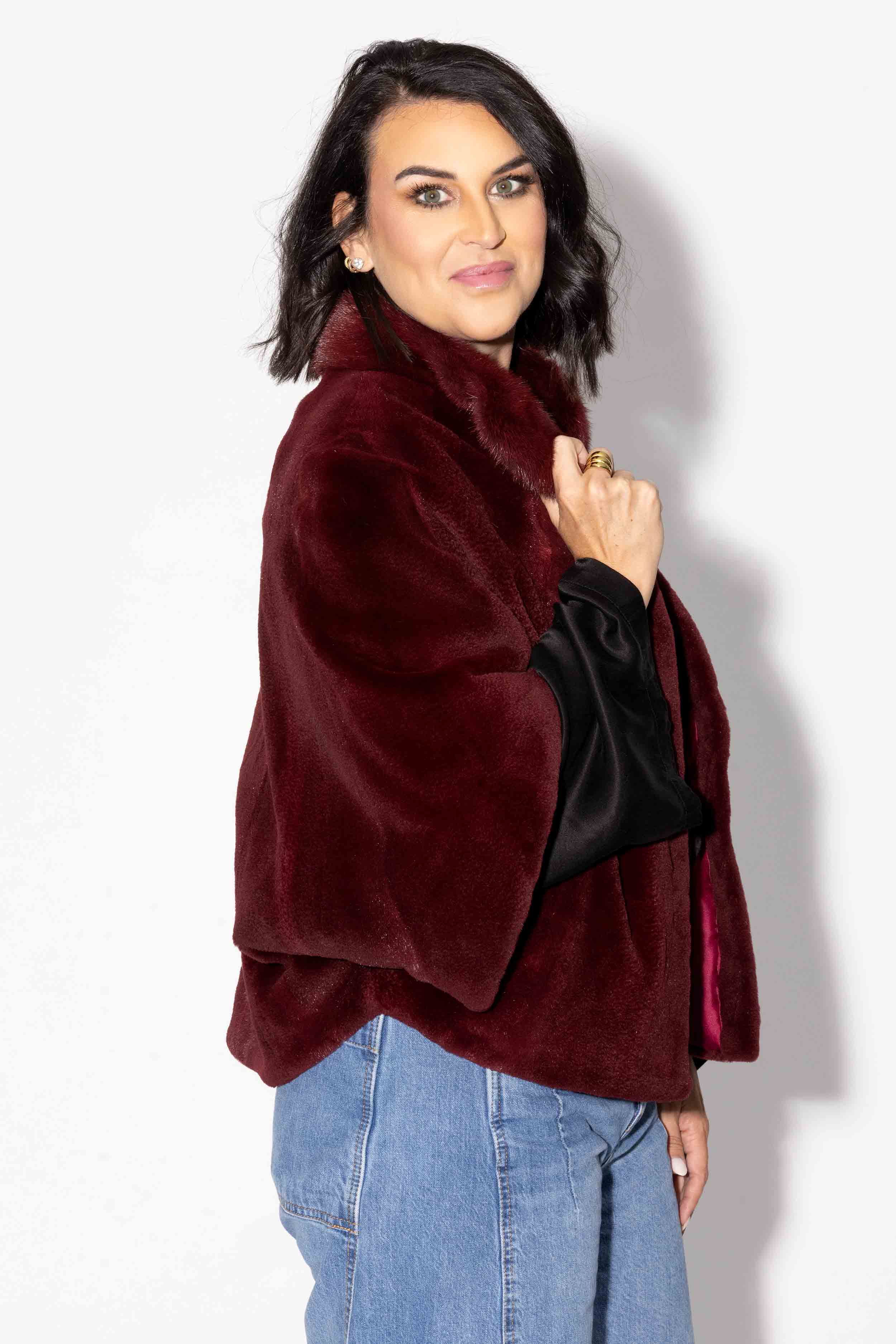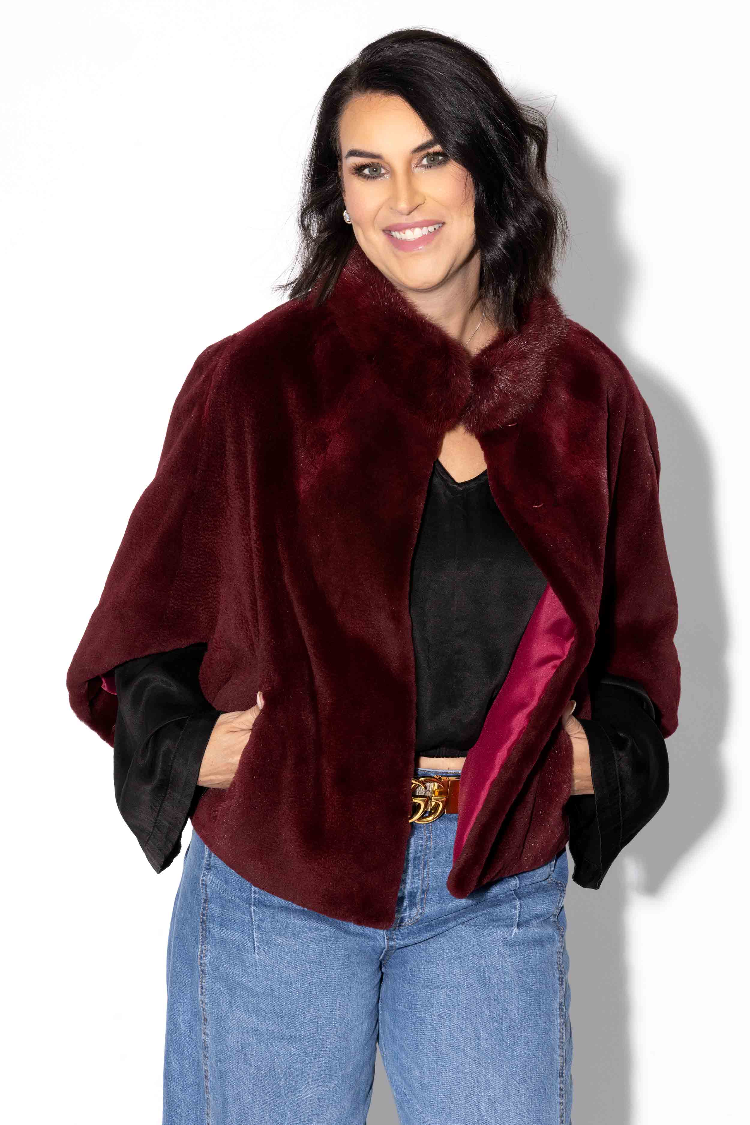This stunning sheared mink fur cape boasts a chic standup collar and stylish cropped sleeves. Fully lined for comfort, it includes convenient side pockets and secure hook and eye closures. Designed to fit most sizes, this elegant piece combines versatility and luxury effortlessly.