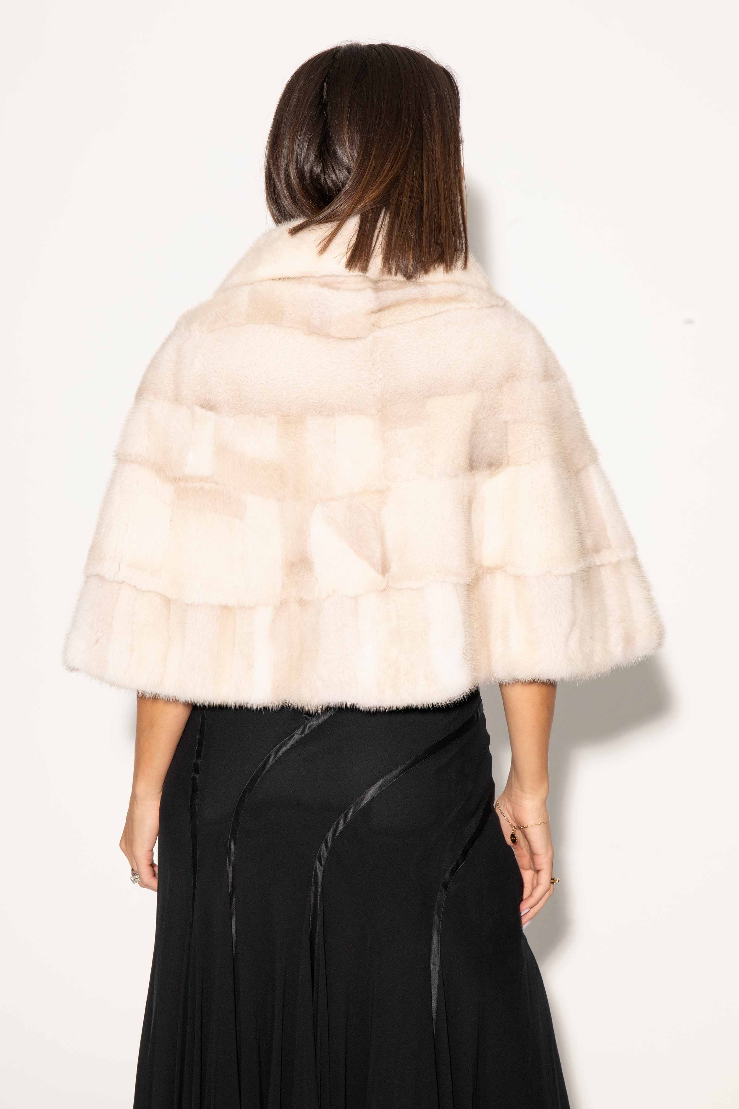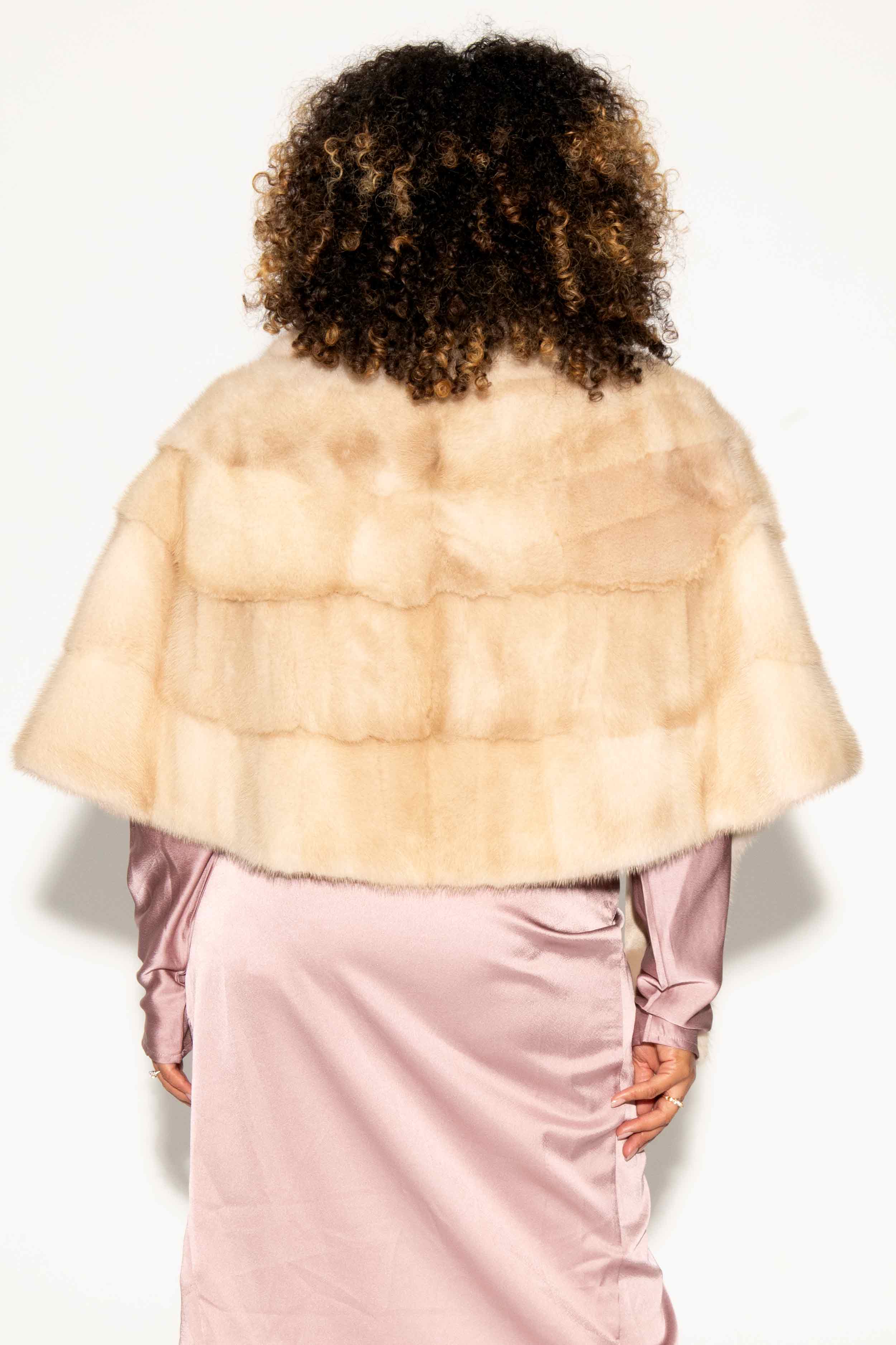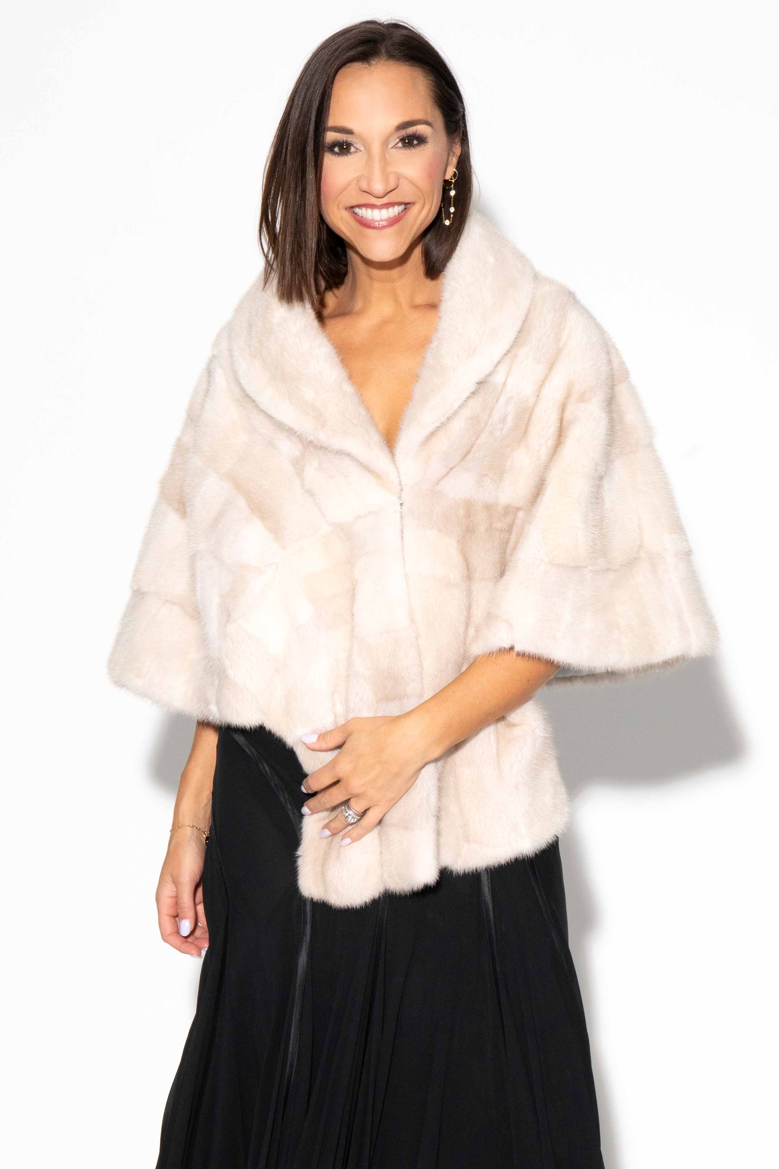 Elevate your elegance with this exquisite sectioned mink fur stole featuring a shawl collar. Designed to keep you cozy while enhancing your look, it's fully lined for comfort and secures easily with a hook & eye closure.