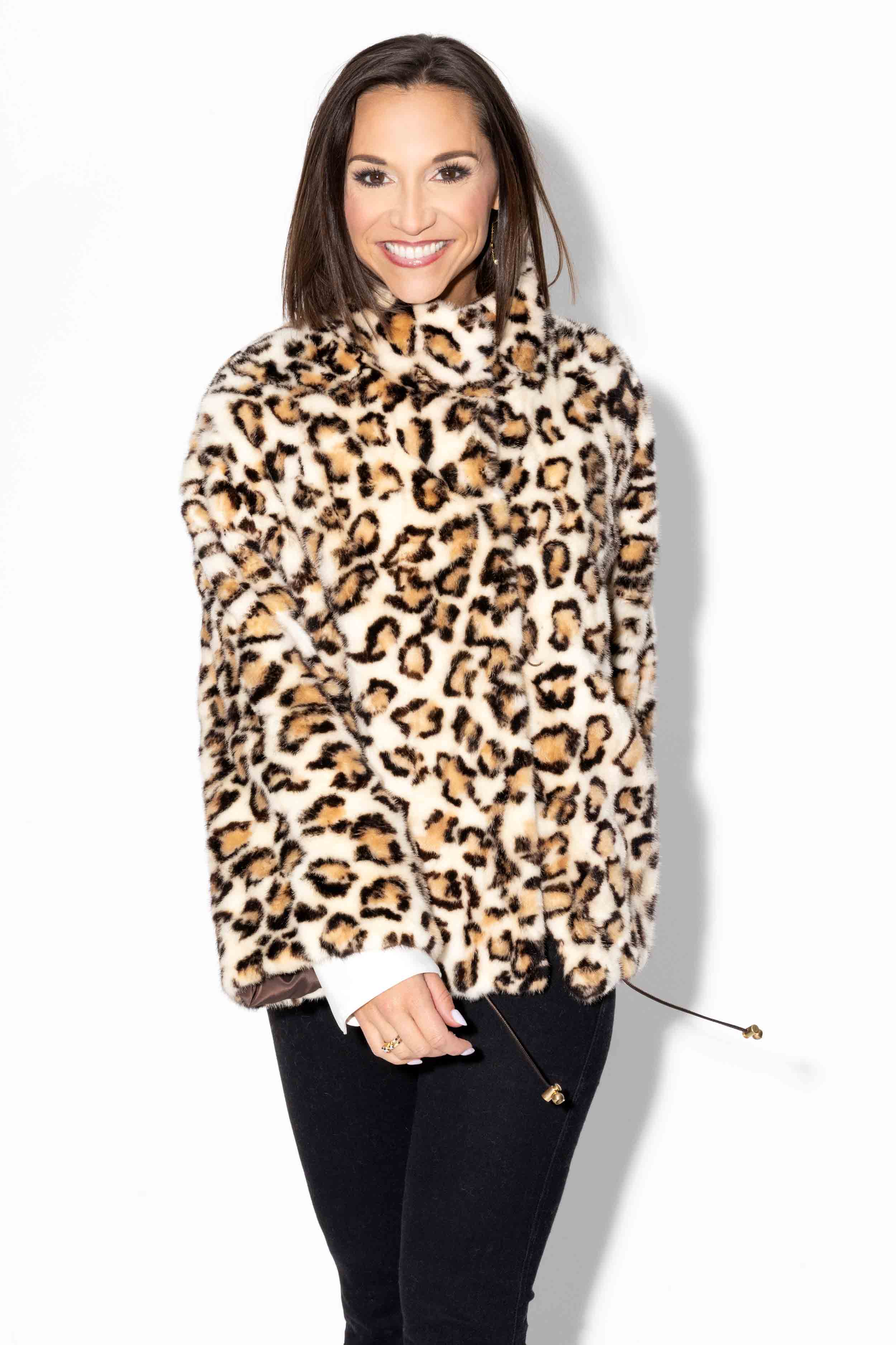 This adorable sheared sectioned mink fur jacket boasts a stand-up collar secured by a magnetic closure. The collar can also be opened to change the look to a wing collar. Fully lined for comfort, it includes hook and eye snap fastenings and straight sleeves. The bottom is adjustable for a perfect fit. Choose from a variety of stylish colors to suit your taste.
