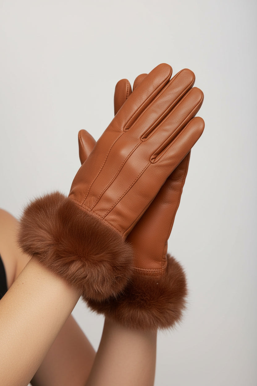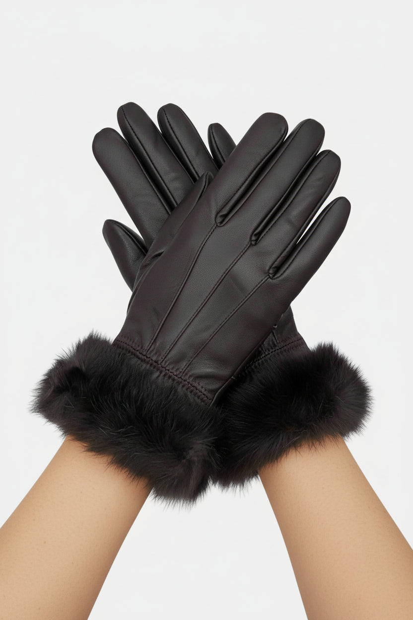 We have combined stylish with affordability in these warm, lamb leather gloves with rabbit fur trim. Your choice of black with black rabbit fur or brown with brown rabbit fur. Makes a great everyday glove or the perfect gift!