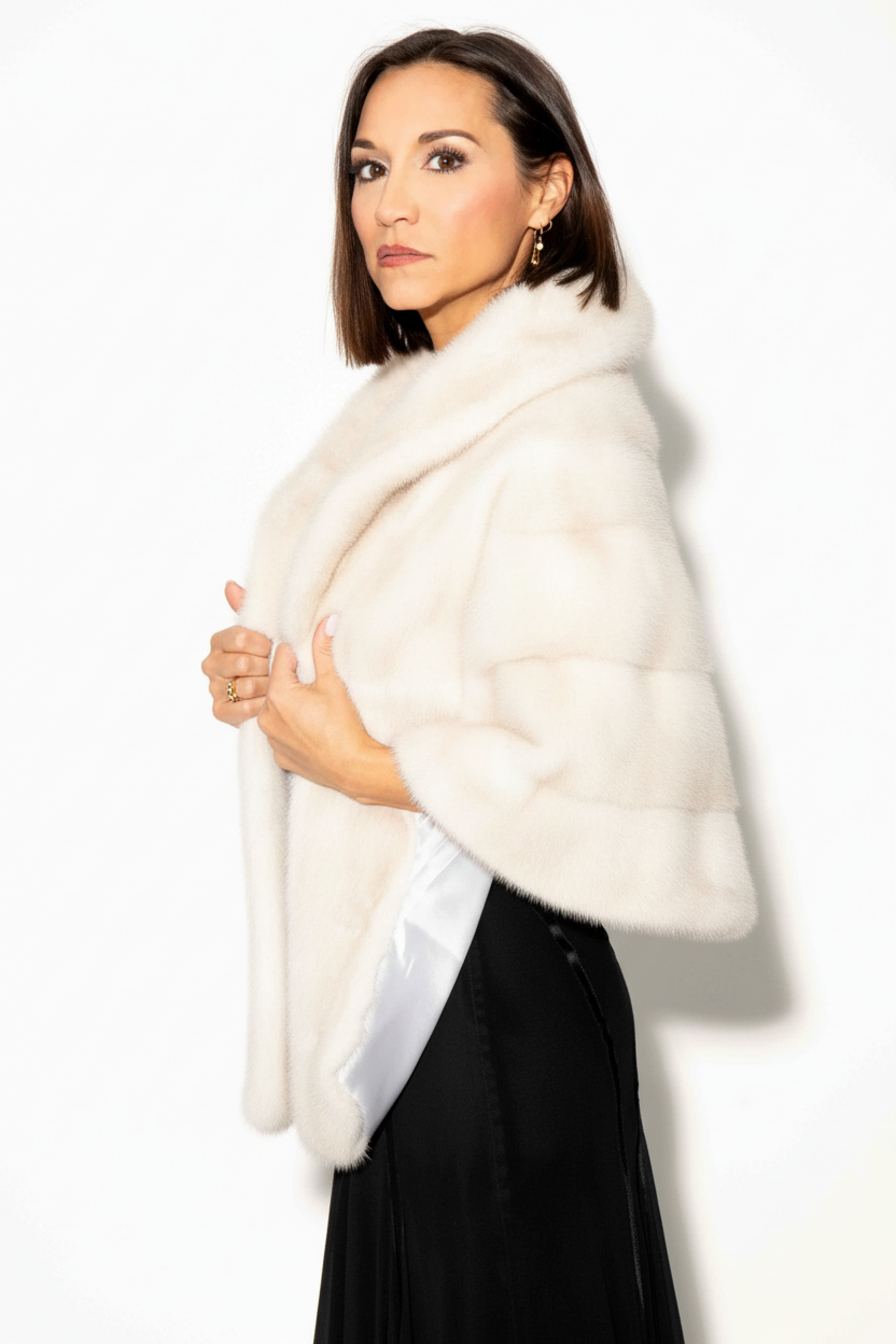 With this smashing mink stole, you'll feel like royalty! With its shawl collar this style is the ultimate expression of feminine elegance, worn over the most svelte evening gowns, or thrown casually over dinner suits. An exquisite gift! This fur is fully lined and has hook & eye closures.