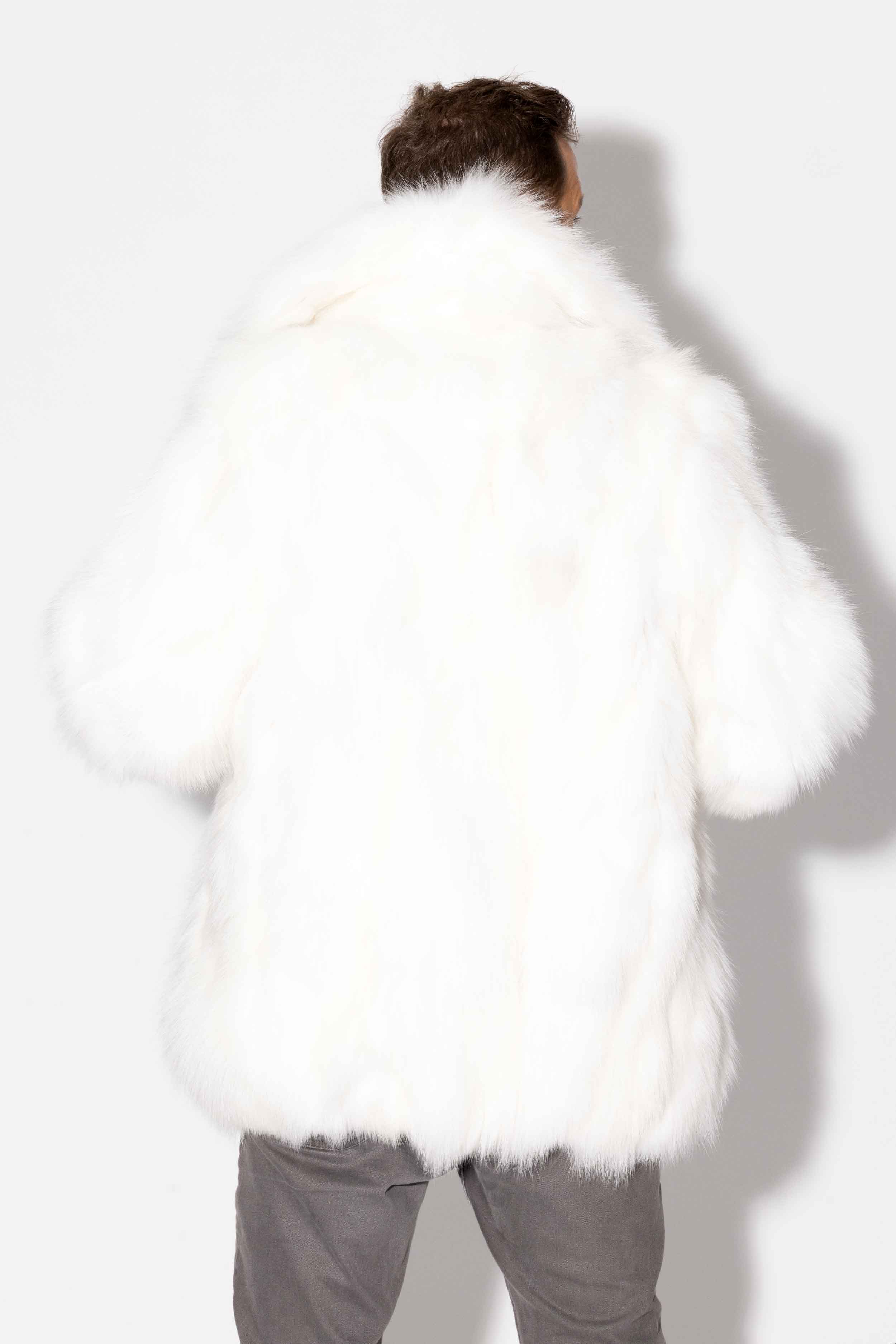 Masculine, fashionable, and warm, this sectioned fox fur bomber jacket is the perfect piece to add to your fur collection! It features a zip front, elastic waist & cuffs, side pockets, and an optional matching detachable fox fur hood.